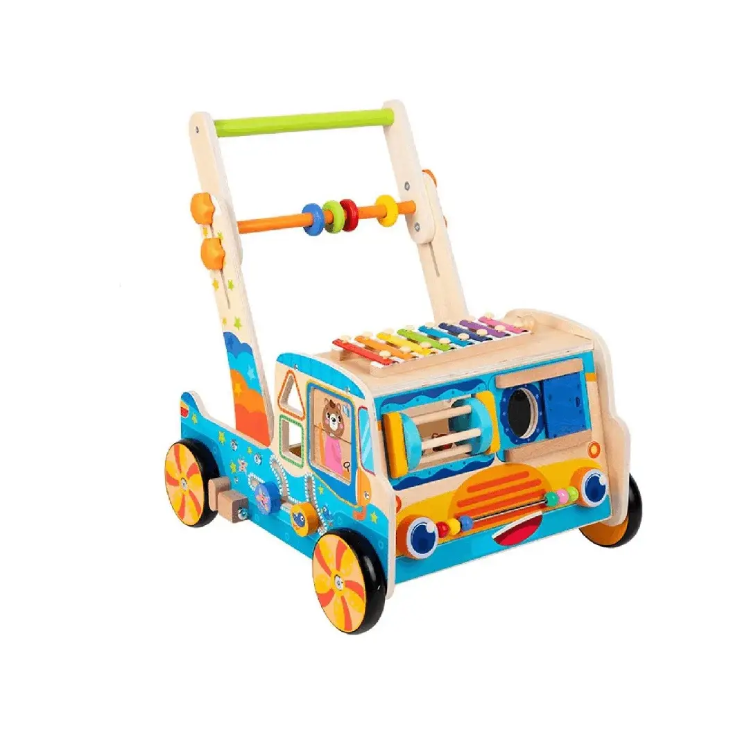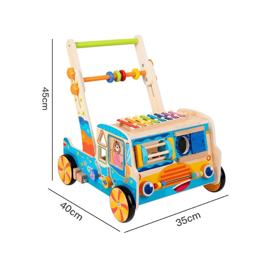 Karrocë ndihmëse për hapat e parë të fëmijëve, e ndërtuar prej druri të qëndrueshëm. Ofron mbështetje gjatë ecjes dhe shpesh përfshin elemente lojërash si forma, rrotulla apo aktivitete të tjera për zhvillim motorik dhe shqisor. E përshtatshme për foshnja dhe fëmijë të vegjël që po mësojnë të ecin.