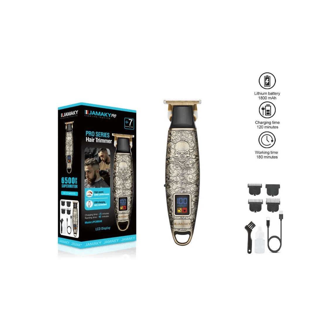 Rrit nivelin e kujdesit personal me trimerin profesional JAMAKY, i pajisur me motor të fuqishëm 280 dhe tehe prej çeliku karbon për prerje të sakta dhe të pastra. Ndriçimi LED dhe ekrani dixhital e bëjnë më të lehtë se kurrë për të realizuar stilin ideal të mjekrës apo mustaqeve. I përsosur për stilime si zero gap dhe thelbësor në çdo set për kujdesin e burrave. Fito kontroll të plotë mbi pamjen tënde me krehëset e rregullueshme 3 në 1 (1-3mm) për stilim të personalizuar – nga një mjekër e kuruar mirë, te vijat precize të flokëve. I përshtatshëm për këdo që kërkon një makinë prerëse pa tela që ofron si saktësi ashtu edhe fleksibilitet.