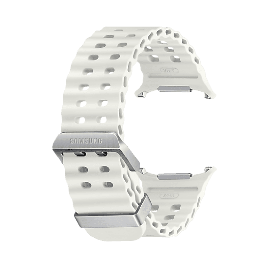 Galaxy Watch Ultra Marine Band ka një dizajn të thjeshtë që bëhet lehtësisht pjesë e trupit të orës, duke garantuar një pamje elegante dhe përshtatje të mirë me dorën, veçanërisht gjatë aktiviteteve intensive. Ndërrimi dhe personalizimi i rripave mund të bëhet pa mundim me butonin me një klikim në trupin e orës, duke eliminuar hapat e ndërlikuar.
